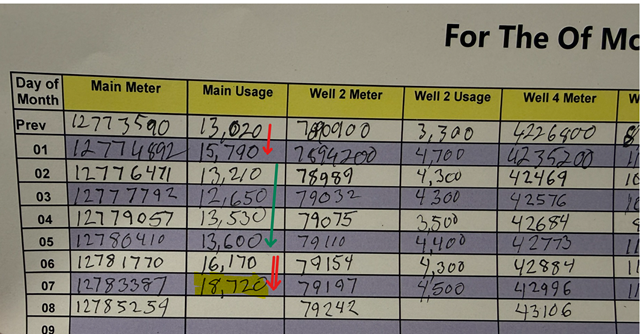 At noon today, we checked the usage since 6PM last night. We’re on track for pushing out nearly 30,000 gallons of water into the system by 6PM tonight. For some context, under our best conditions we distribute 9k-13k a day. Lately we’ve been seeing 11k-13k with spikes of 15-16k (an anomoly we don’t understand as leaks don’t heal themselves). Our system is fed by two wells, one of which we can only take about 4k gallons a day from due to radionuclide contamination. We can reliably get about 16k gallons a day from them without stressing them too much. Beyond that, we’re depleting our storage tank (25k gallons) instead of keeping it filled.